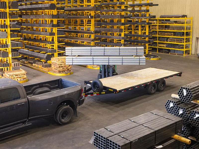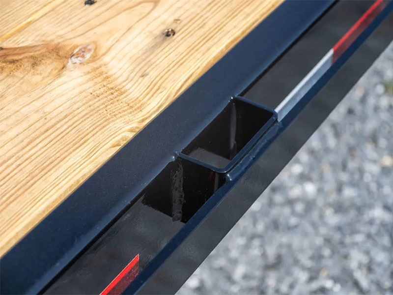 The 14OE 14K Over-the-Axle Bumper Pull Trailer combines durability and value with its 6-inch channel frame and tongue. The 102-inch wide deck and 35-inch deck height provide ample space, while the full-length rubrail, stake pockets, and standard slide-in ramps ensure secure and versatile hauling. Tandem 7K axles, forward self-adjusting brakes, and radial tires offer reliable performance, and the adjustable coupler and 7,000#. drop-leg jack ensure easy hitching.